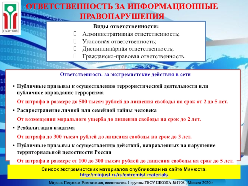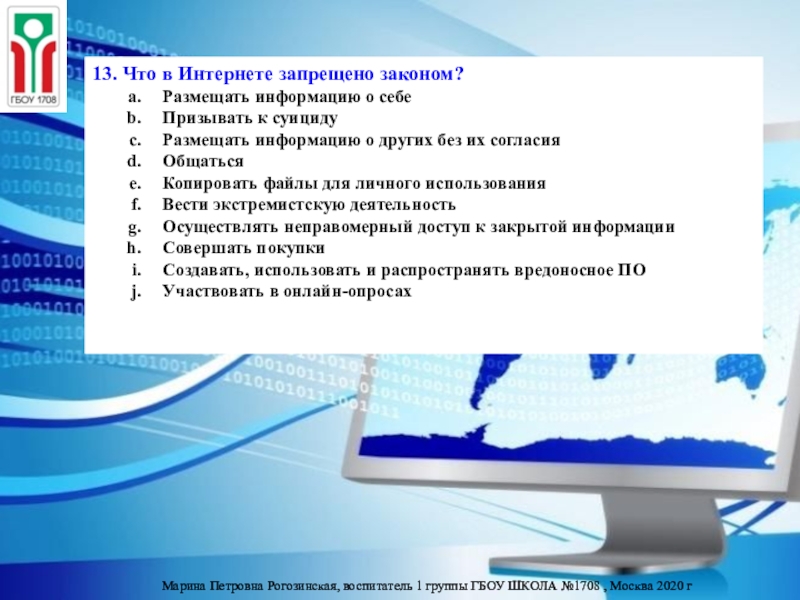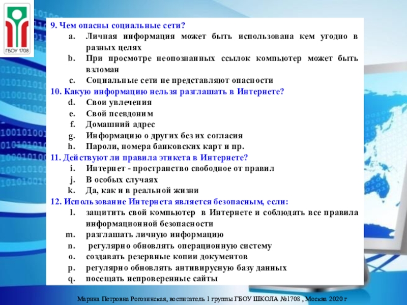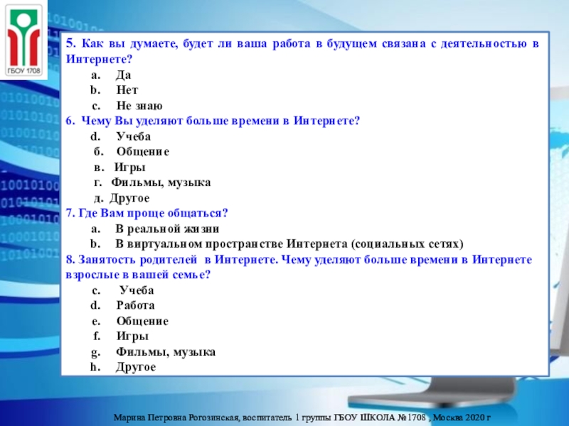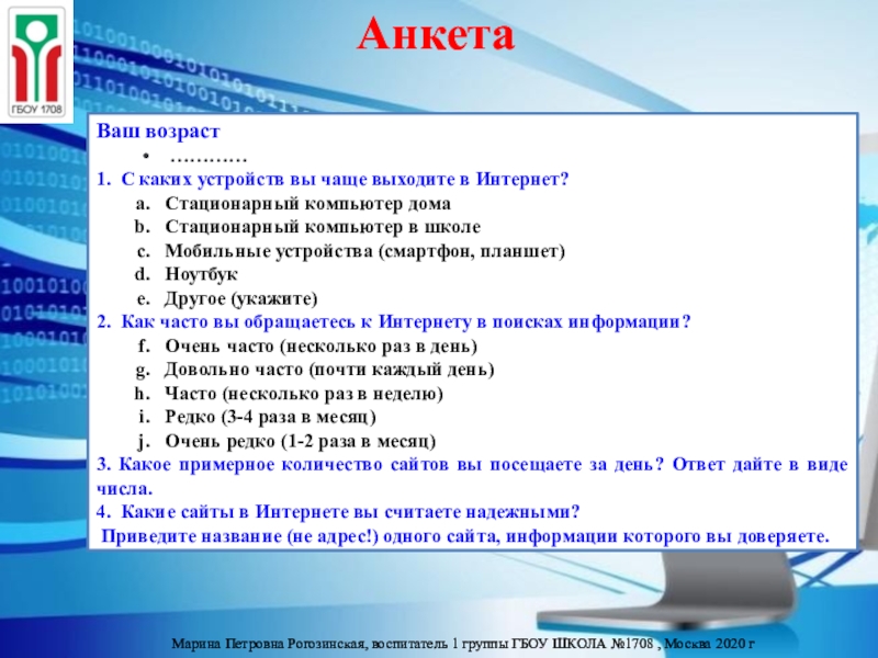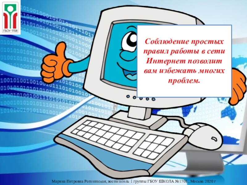 Марина Петровна Рогозинская, воспитатель 1 группы ГБОУ ШКОЛА №1708 , Москва 2020 г.
