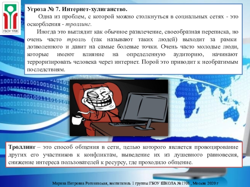 Троллинг – это способ общения в сети, целью которого является провоцирование других его участников к конфликтам, выведение их из душевного равновесия, снижение интереса пользователей к ресурсу, где проходило общение.