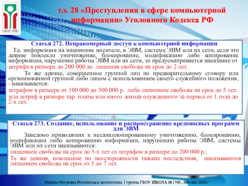 Статья 273. Создание, использование и распространение вредоносных программ для ЭВМ
