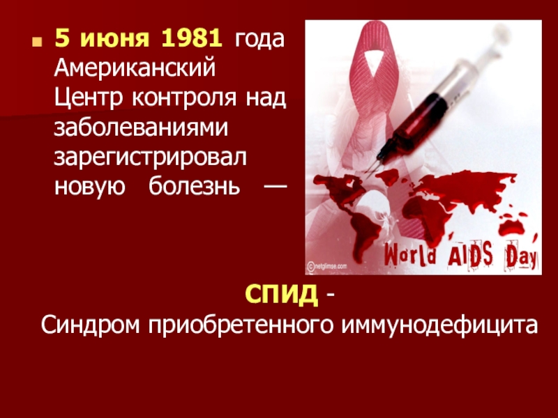 Слайд 65 июня 1981 года Американский Центр контроля над заболеваниями зарегистрировал