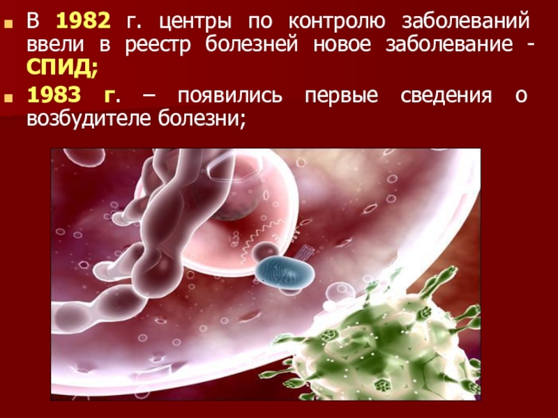 Слайд 9В 1982 г. центры по контролю заболеваний ввели в реестр болезней