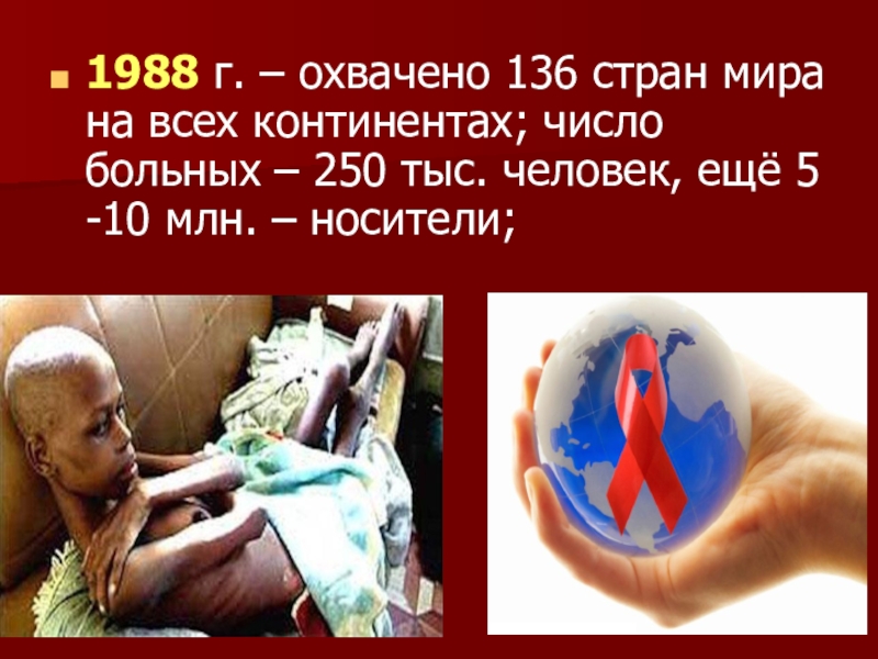 Слайд 121988 г. – охвачено 136 стран мира на всех континентах; число