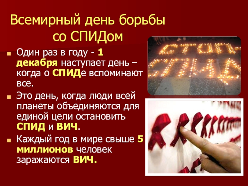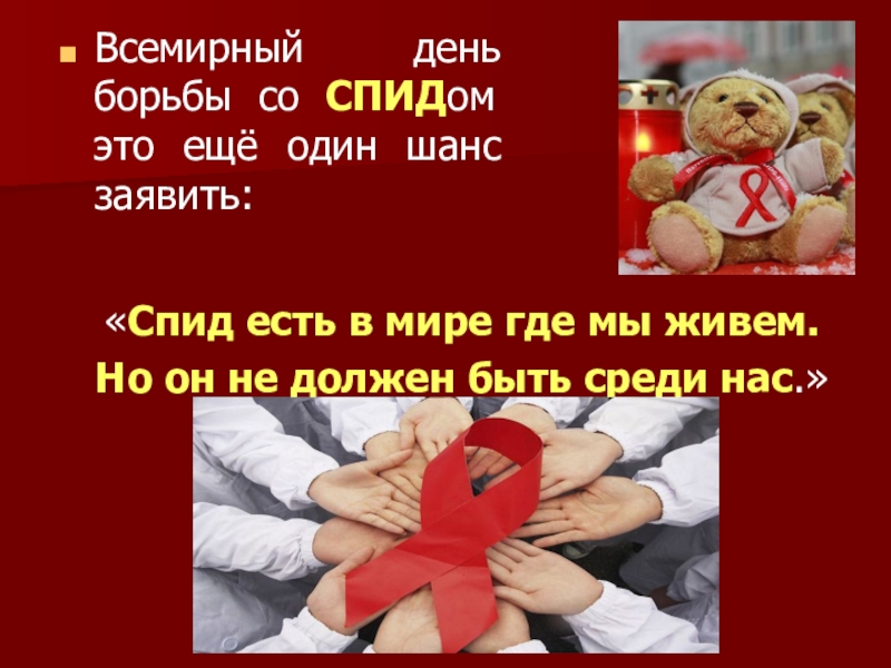 Слайд 4Всемирный день борьбы со СПИДом