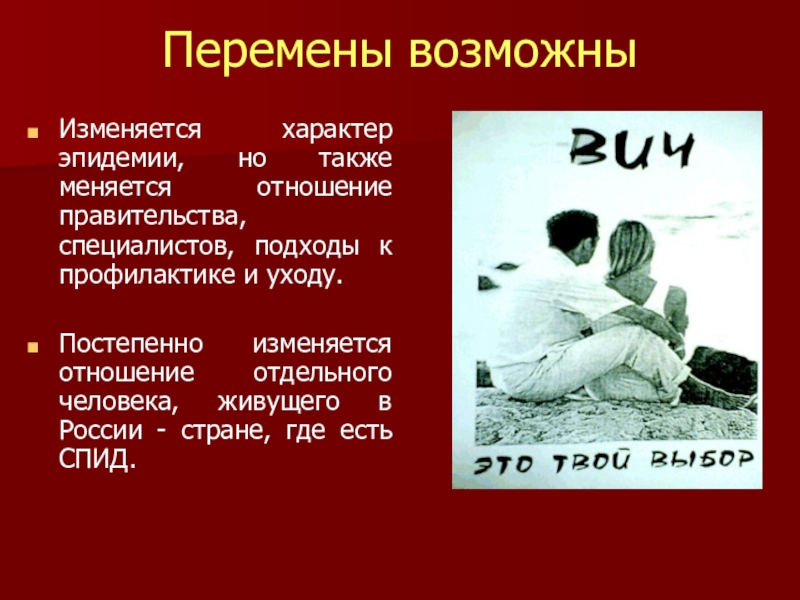 Постепенно изменяется отношение отдельного человека, живущего в России - стране, где есть СПИД.