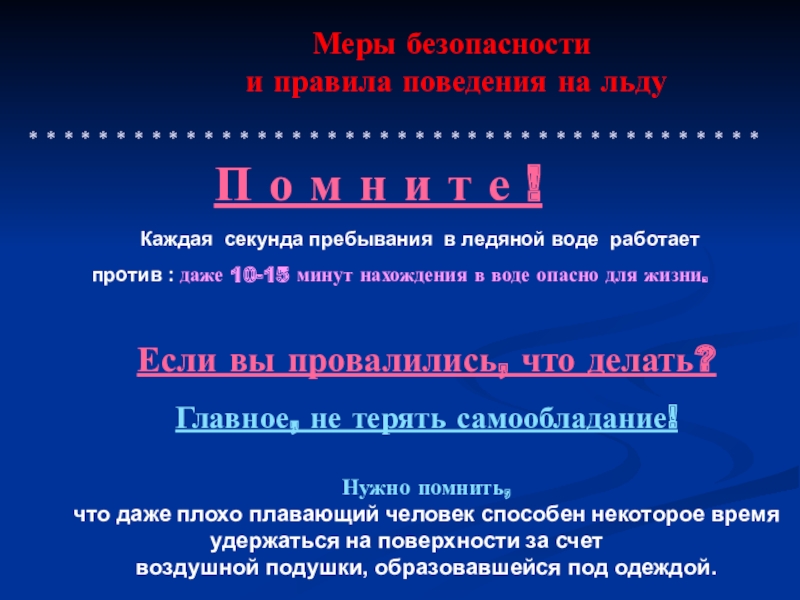 Каждая секунда пребывания в ледяной воде работает против : даже 10-15 минут нахождения в воде опасно для жизни.