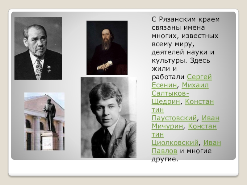 Слайд 13С Рязанским краем связаны имена многих, известных всему миру, деятелей науки