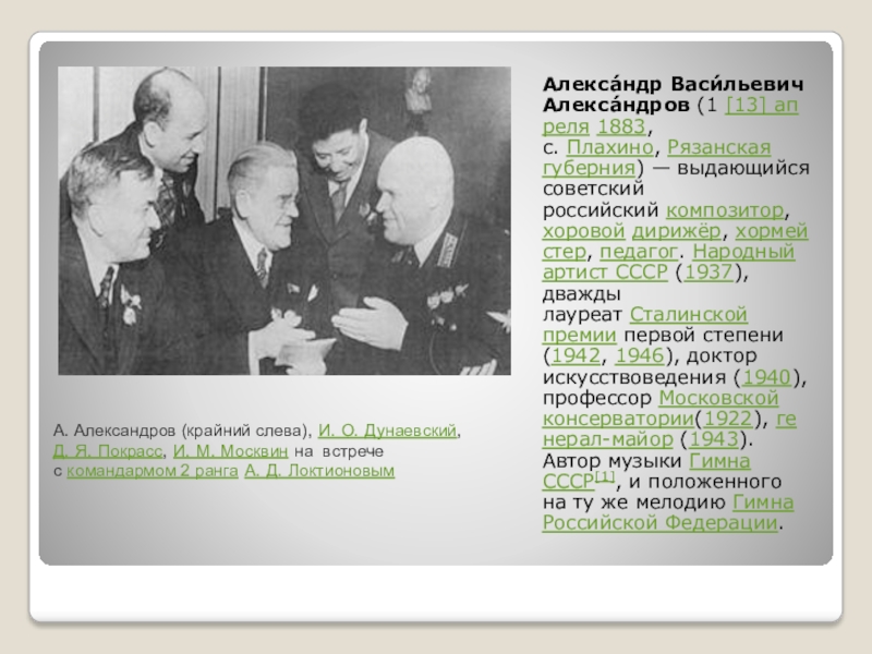Слайд 17Алекса́ндр Васи́льевич Алекса́ндров (1 [13] ап