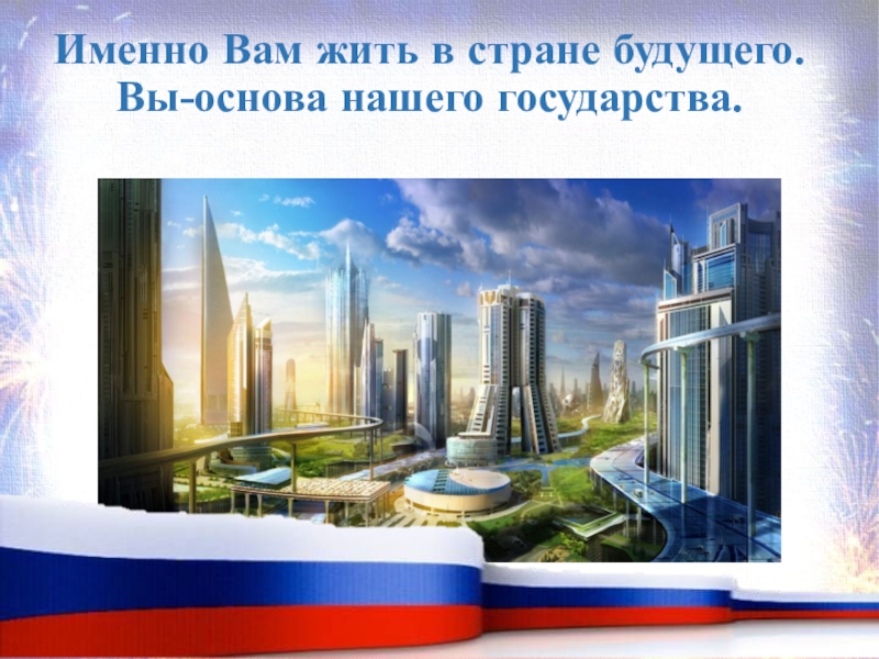 Слайд 12Именно Вам жить в стране будущего. Вы-основа нашего государства.