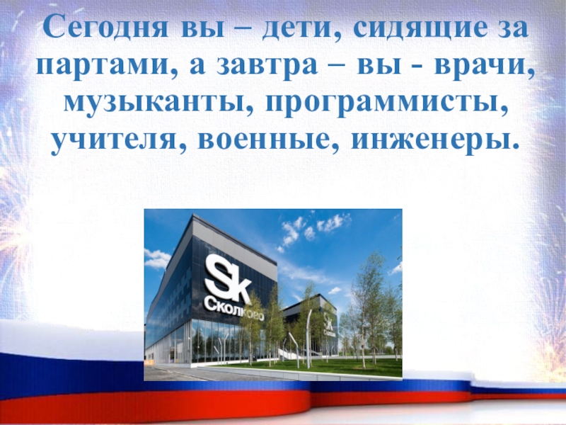 Сегодня вы – дети, сидящие за партами, а завтра – вы - врачи, музыканты, программисты, учителя, военные,