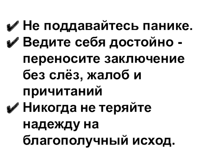 Ведите себя достойно - переносите заключение без слёз, жалоб
