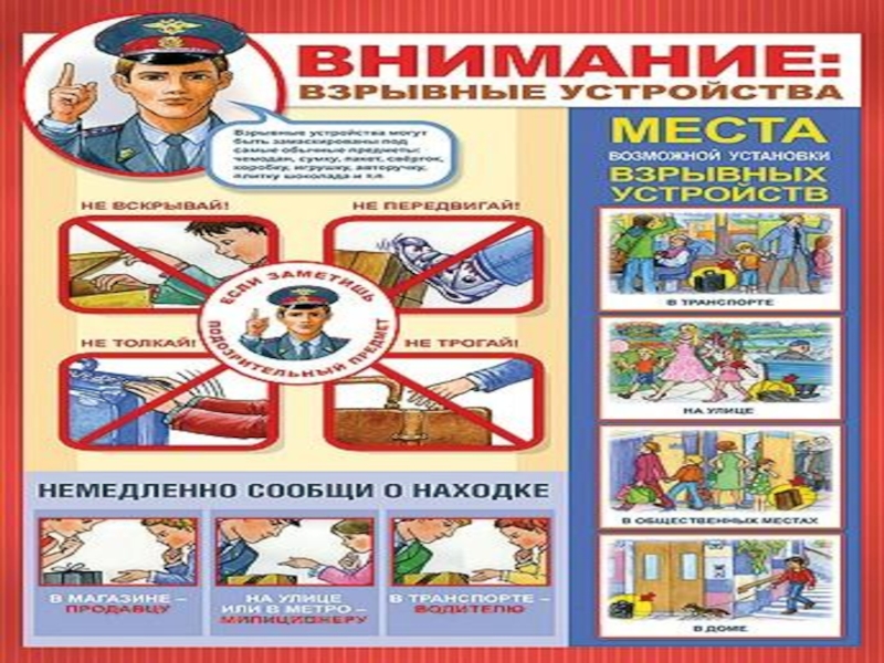 не трогать, не поднимать, не передвигать обнаруженный предмет!