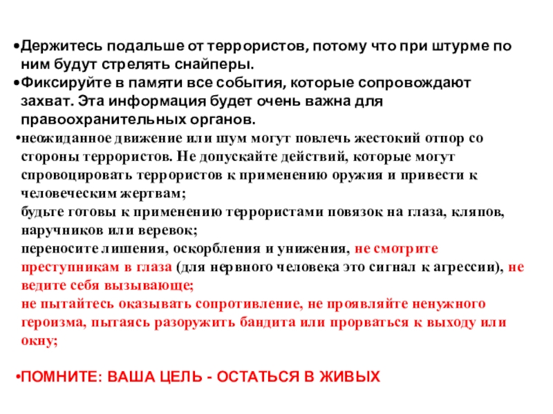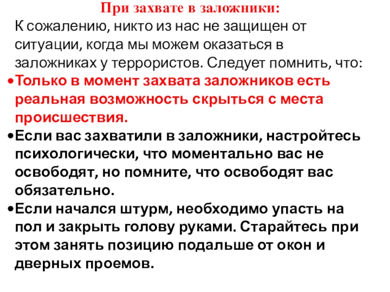 ситуации, когда мы можем оказаться в заложниках у террористов. Следует помнить, что:
