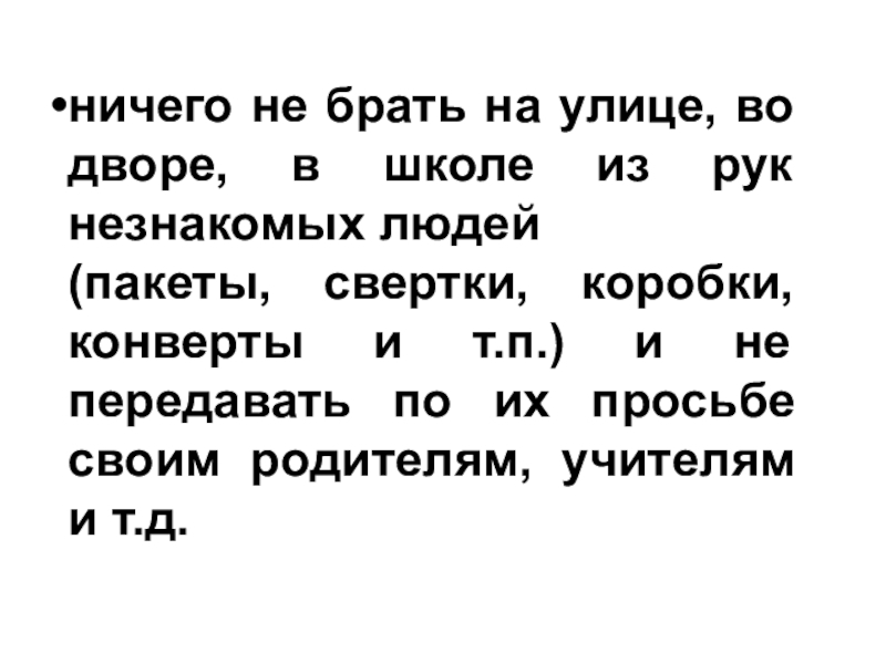 Слайд 10ничего не брать на улице, во дворе, в школе из рук
