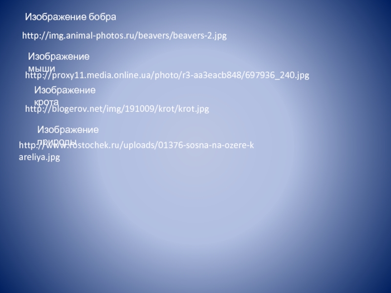 Изображение бобраИзображение мышиИзображение кротаhttp://img.animal-photos.ru/beavers/beavers-2.jpghttp://blogerov.net/img/191009/krot/krot.jpghttp://proxy11.media.online.ua/photo/r3-aa3eacb848/697936_240.jpghttp://www.rostochek.ru/uploads/01376-sosna-na-ozere-kareliya.jpgИзображение природы