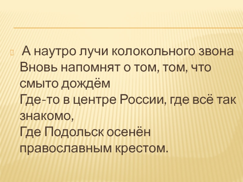Слайд 17 А наутро лучи колокольного звона Вновь напомнят о том, том, что