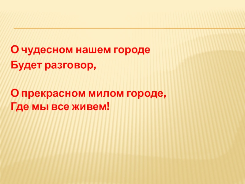 О чудесном нашем городеБудет разговор, О прекрасном милом городе, Где мы все живем!