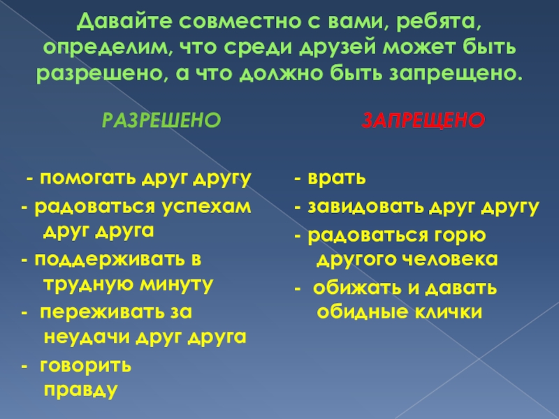 Слайд 25Давайте совместно с вами, ребята, определим, что среди друзей может быть