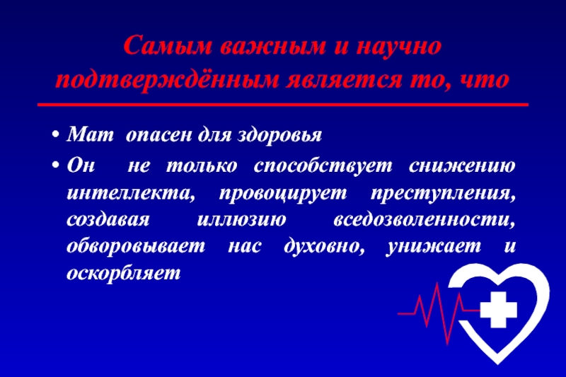 Слайд 19Самым важным и научно подтверждённым является то, что
