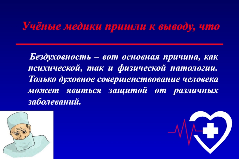 причина, как психической, так и физической патологии. Только духовное совершенствование человека может явиться защитой от различных заболеваний.