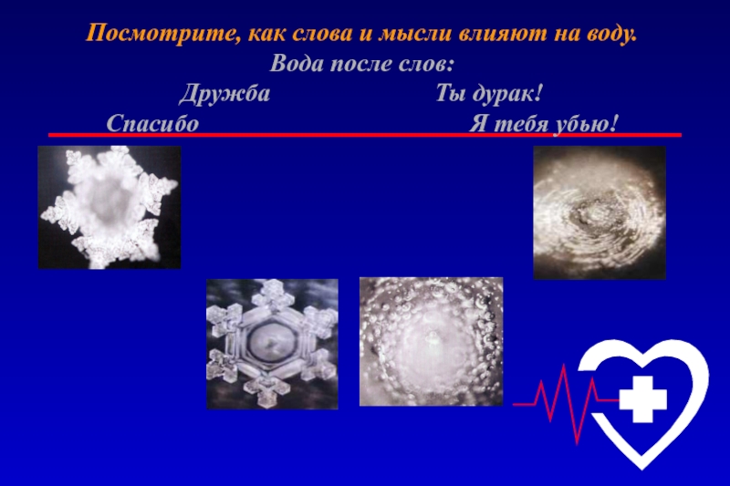 Слайд 17Посмотрите, как слова и мысли влияют на воду.