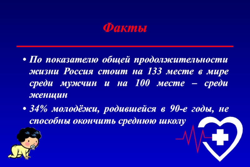 По показателю общей продолжительности жизни Россия стоит на 133 месте в