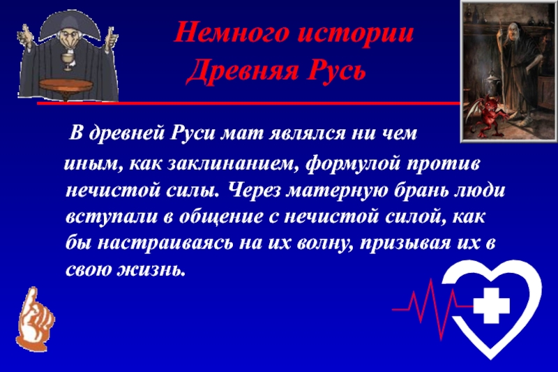 иным, как заклинанием, формулой против нечистой силы. Через матерную брань люди вступали в общение с нечистой силой, как бы настраиваясь на их волну, призывая их в свою жизнь.