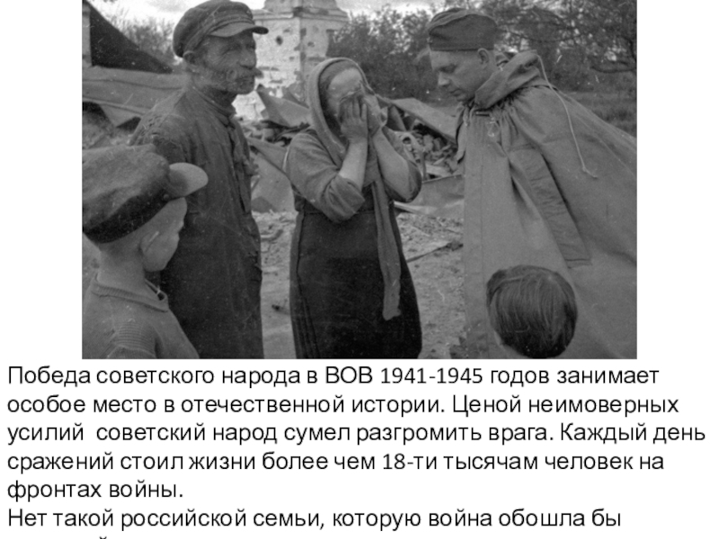 Слайд 8Победа советского народа в ВОВ 1941-1945 годов занимает особое место в