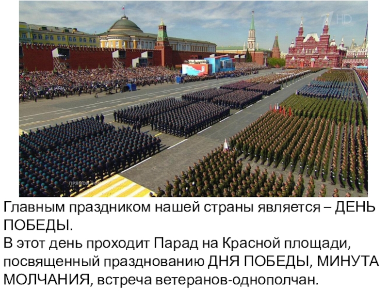 Слайд 14Главным праздником нашей страны является – ДЕНЬ ПОБЕДЫ.