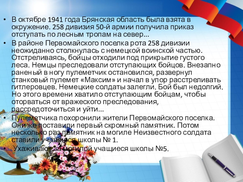 Слайд 25В октябре 1941 года Брянская область была взята в окружение. 258