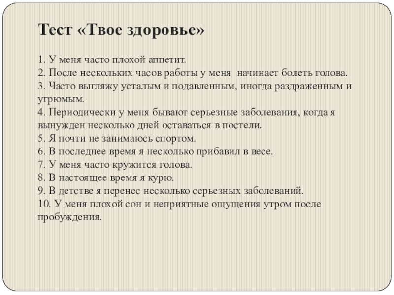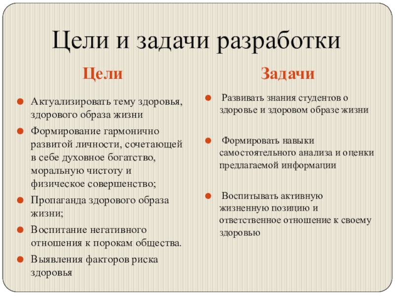 Развивать знания студентов о здоровье и здоровом образе жизни