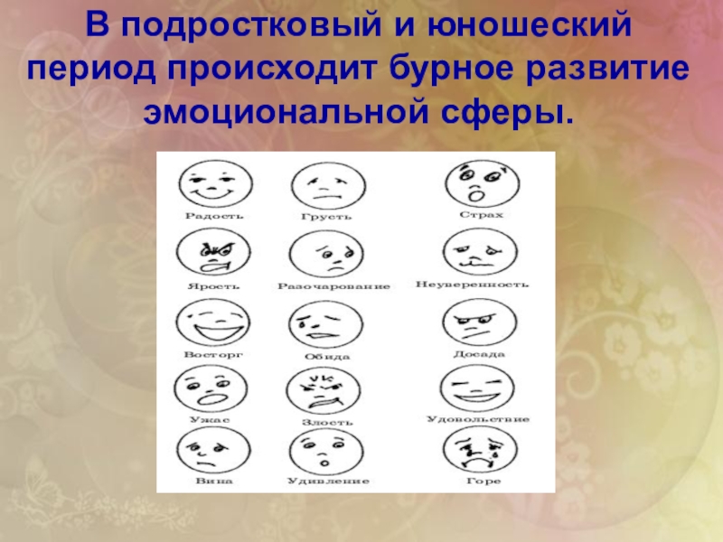 Слайд 18В подростковый и юношеский период происходит бурное развитие эмоциональной сферы.