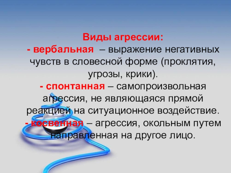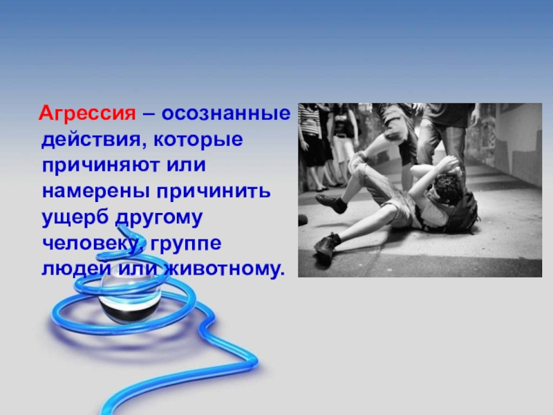 Слайд 121 Агрессия – осознанные действия, которые причиняют или намерены причинить