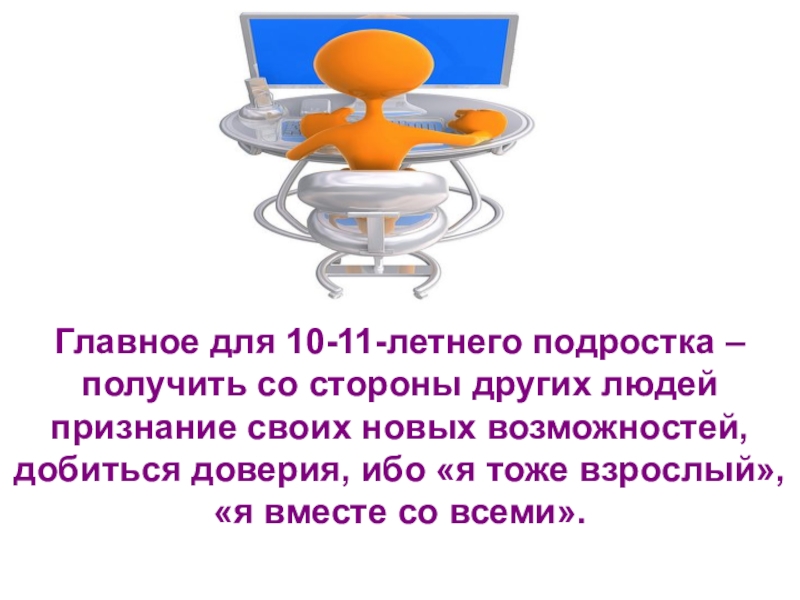 Слайд 40Главное для 10-11-летнего подростка – получить со стороны других людей признание