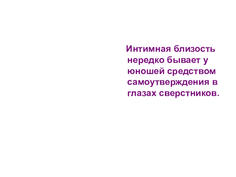 Слайд 114 Интимная близость нередко бывает у юношей средством самоутверждения в