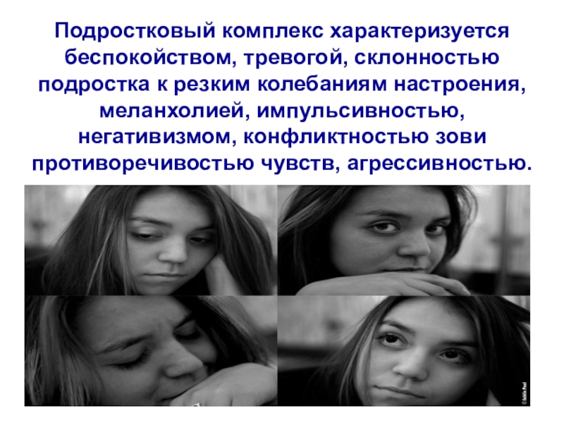 Слайд 130Подростковый комплекс характеризуется беспокойством, тревогой, склонностью подростка к резким колебаниям настроения,