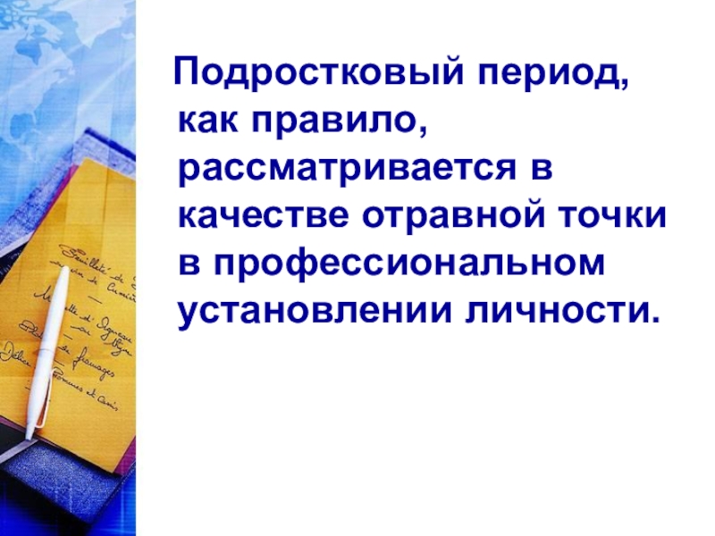 Слайд 28Подростковый возраст можно рассматривать как наиболее сензитивный период для формирования идеальных