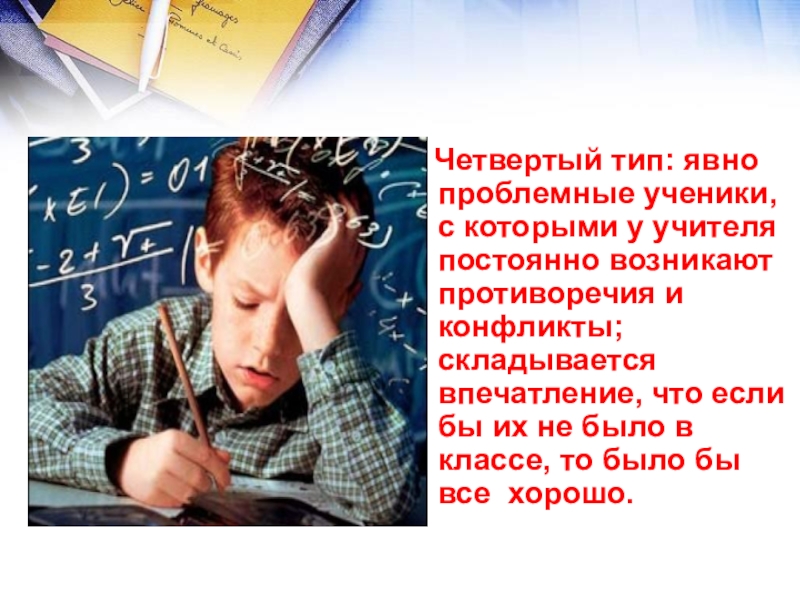 Слайд 50 Четвертый тип: явно проблемные ученики, с которыми у учителя