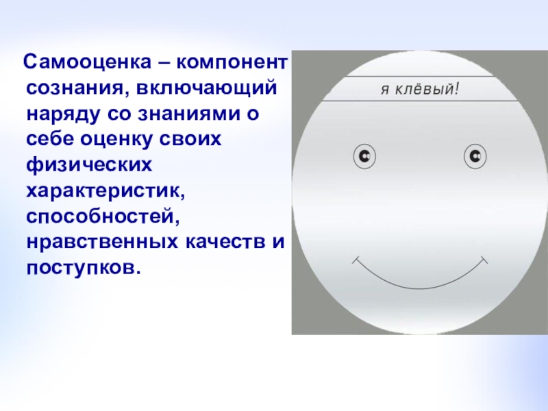Слайд 32 Самооценка – компонент сознания, включающий наряду со знаниями о