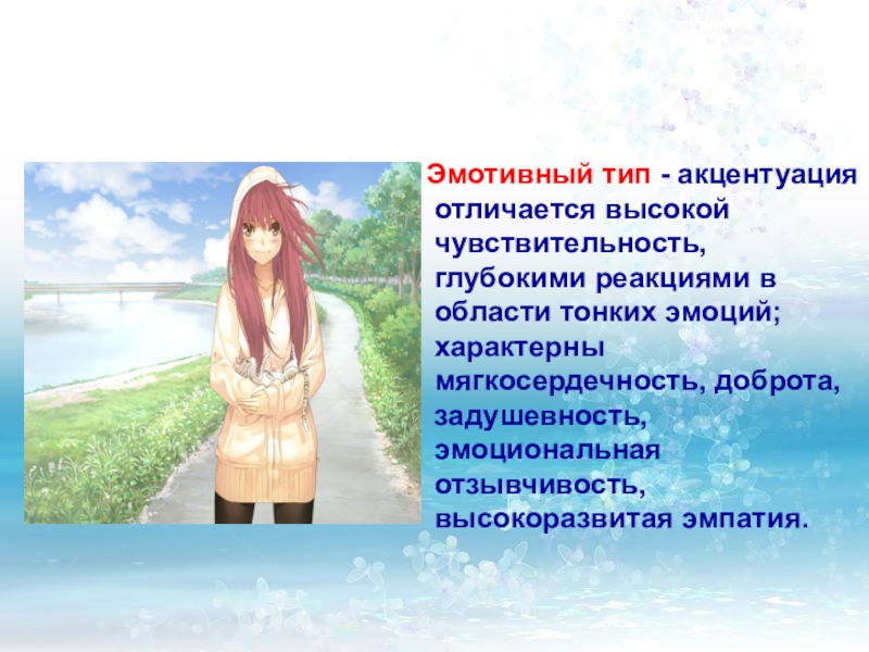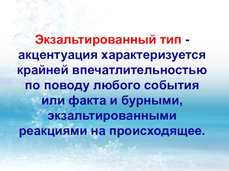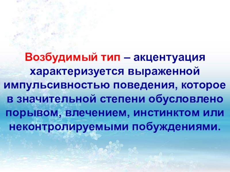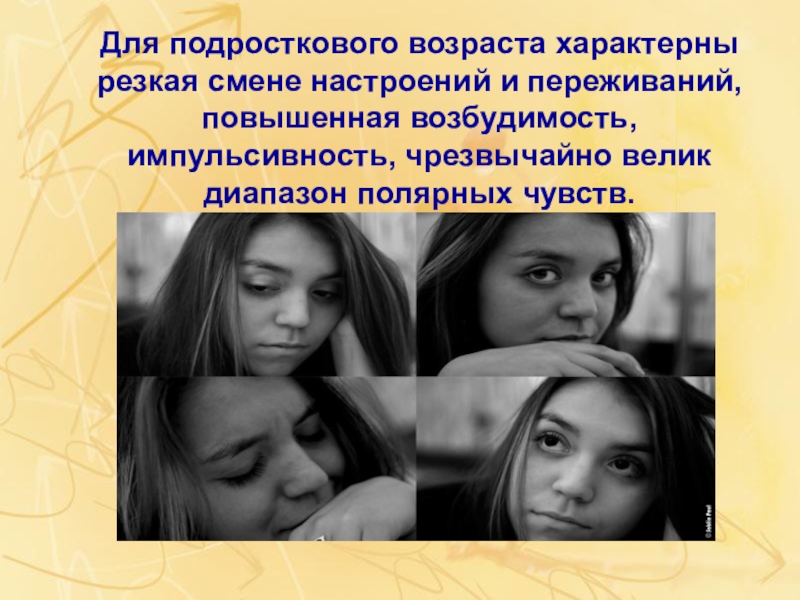 Слайд 20Для подросткового возраста характерны резкая смене настроений и переживаний, повышенная возбудимость,