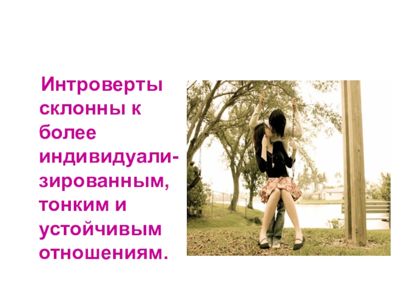Слайд 112 Интроверты склонны к более индивидуали-зированным, тонким и устойчивым отношениям.