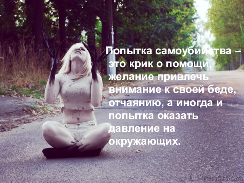Слайд 164 Попытка самоубийства – это крик о помощи, желание привлечь внимание