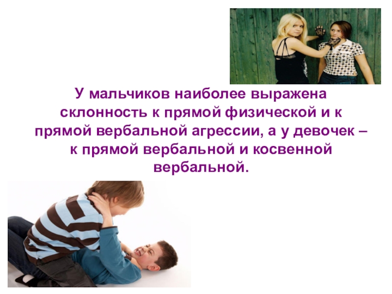 Слайд 124У мальчиков наиболее выражена склонность к прямой физической и к прямой