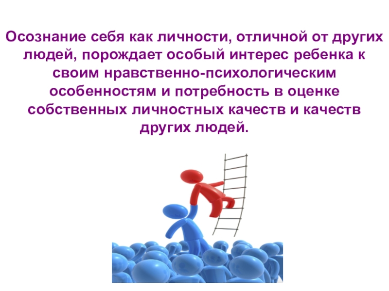 ребенка к своим нравственно-психологическим особенностям и потребность в оценке собственных личностных качеств и качеств других людей.