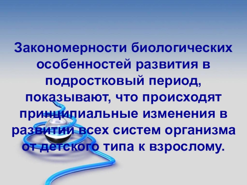 Слайд 6Закономерности биологических особенностей развития в подростковый период, показывают, что происходят принципиальные