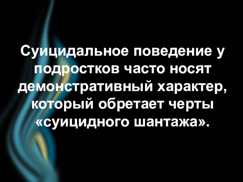Слайд 153Суицидальное поведение у подростков часто носят демонстративный характер, который обретает черты