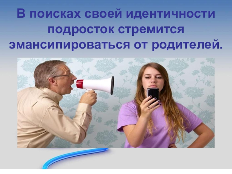 Слайд 26В поисках своей идентичности подросток стремится эмансипироваться от родителей.