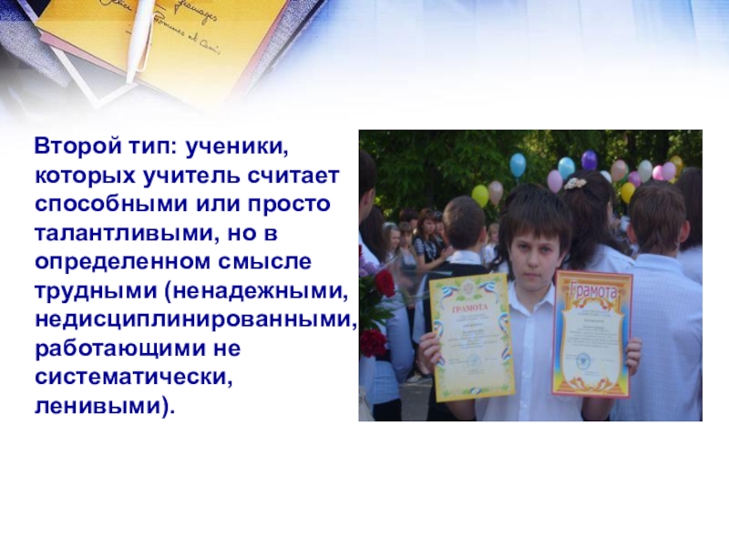 Слайд 48 Второй тип: ученики, которых учитель считает способными или просто