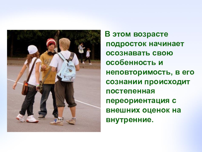 Слайд 35 В этом возрасте подросток начинает осознавать свою особенность и