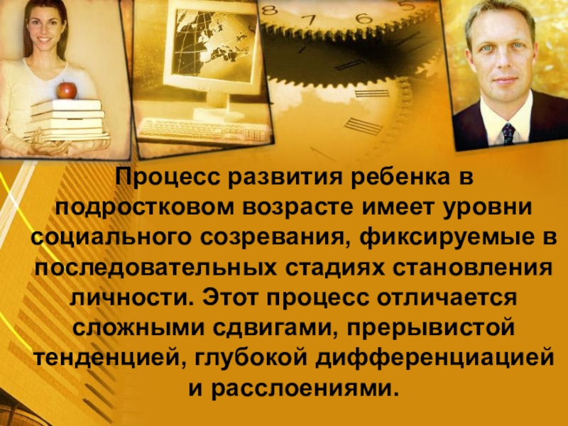 Слайд 37Процесс развития ребенка в подростковом возрасте имеет уровни социального созревания, фиксируемые