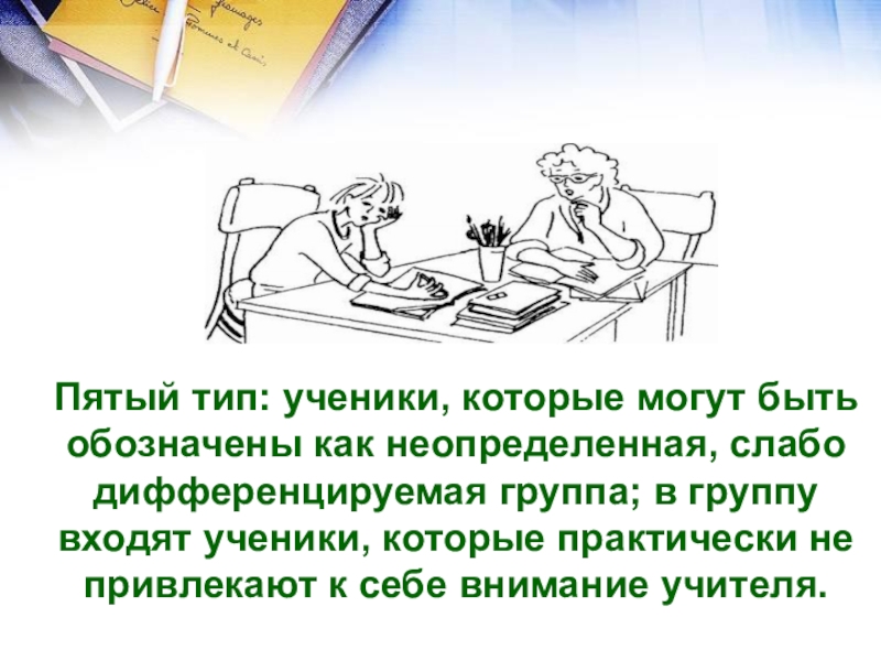 Слайд 51Пятый тип: ученики, которые могут быть обозначены как неопределенная, слабо дифференцируемая